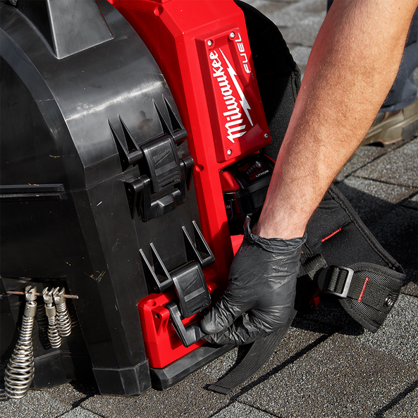 Tackling the most frequent challenge of any drain cleaning application, getting the machine onto the job, the brilliant SWITCH PACK System utilises a modular design with backpack straps for the easiest transport to any roof, drain, crawl space, or clean out.